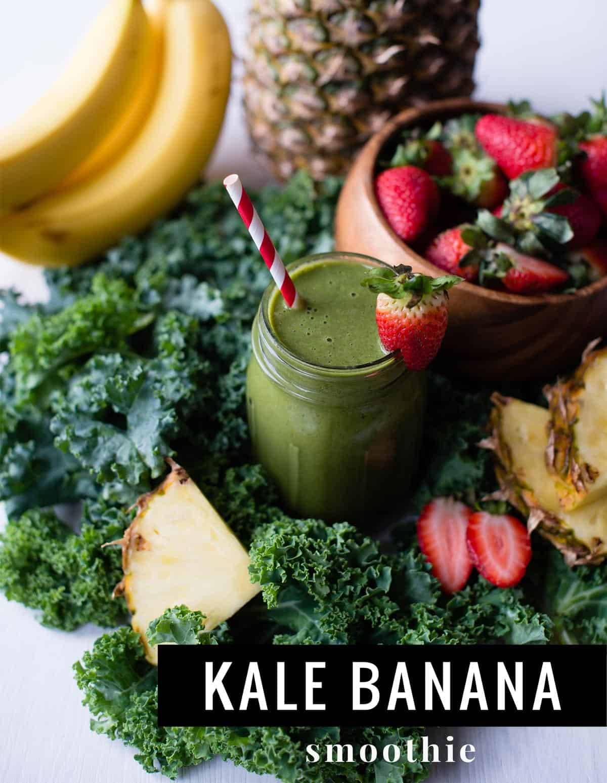 Keywords: kale banana smoothie, kale smoothie, vegan smoothie, green smoothie